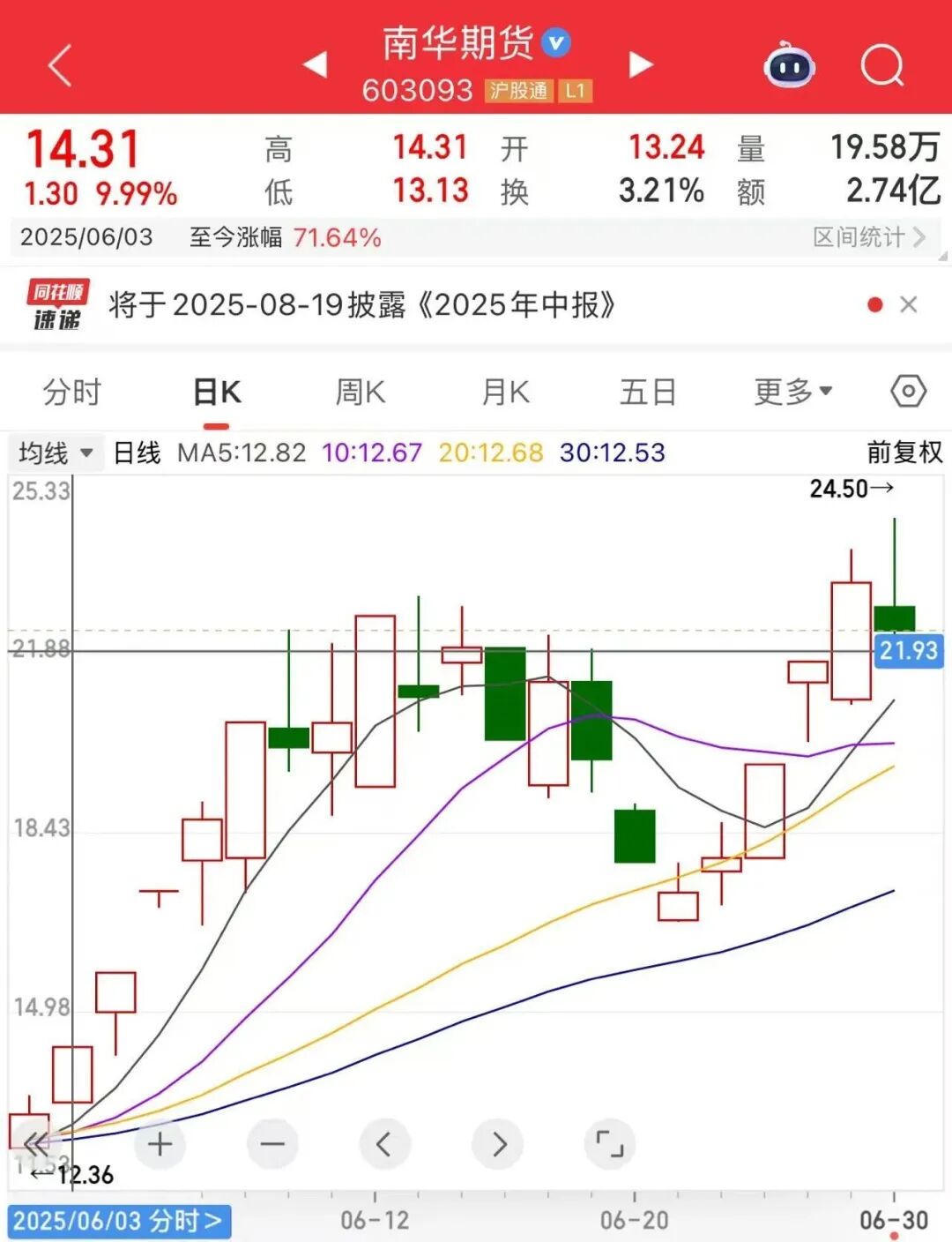 今年关税政策多变、地缘摩擦频发,大宗商品市场波动加剧,境内外客户避险需求增加,相关业务增长迅速,使期货公司业务规模提升、市场关注度提高。格林大华期货首席专家王骏认为安全投资炒股技巧,2025年上半年大宗商品市场行情复杂多变,投资者对期货套期保值、投机交易的需求增加,期货市场交易活跃度提升,期货公司业绩预期向好可能推动其股价走强。
